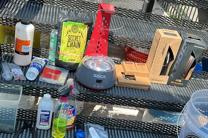 I only own one bike: a gloss-red Specialized Roubaix Comp 2022. I spent all of July 10th doing maintenance—learning to wax a chain, installing a new chain, servicing the wheel hub, mounting new tubeless tires, charging every electronic component I owned, replacing brake rotors and pads. A full-day mechanic's exam.